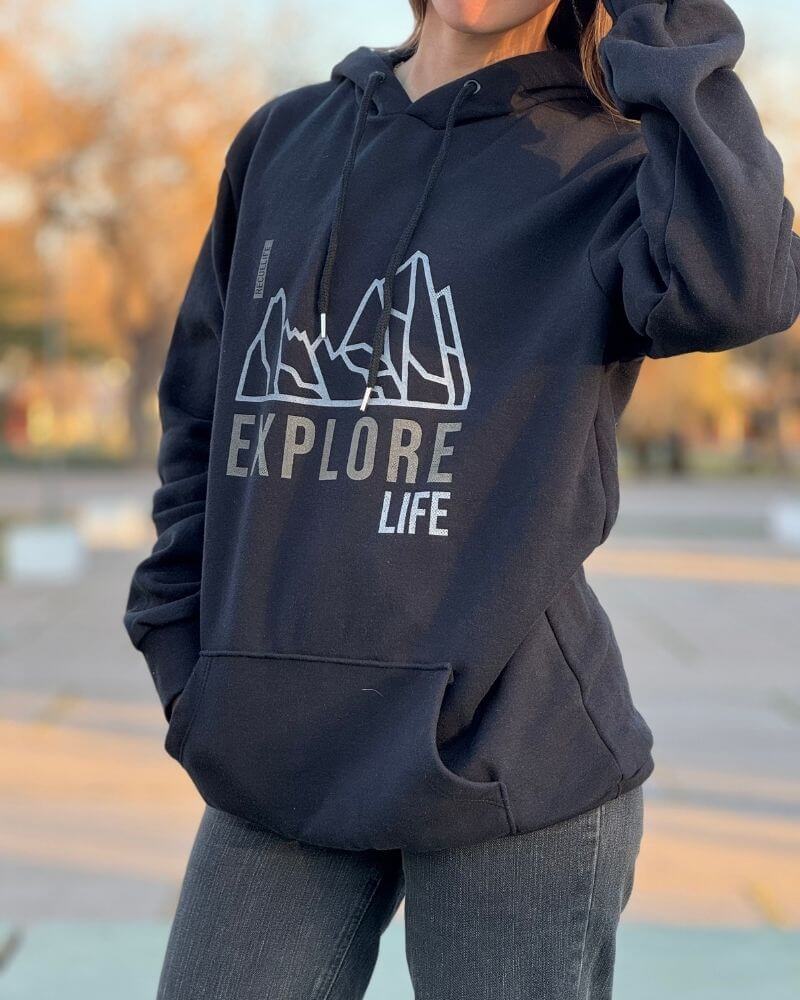 → Modelo HOODIE Unisex: buzo con capucha, bolsillos tipo canguro al frente y ajuste con cordón en capucha. Puños y cintura con ribete elástico para mayor comodidad. De calce relajado, cómodo y versátil, ideal para el uso diario o para acompañar aventuras al aire libre.