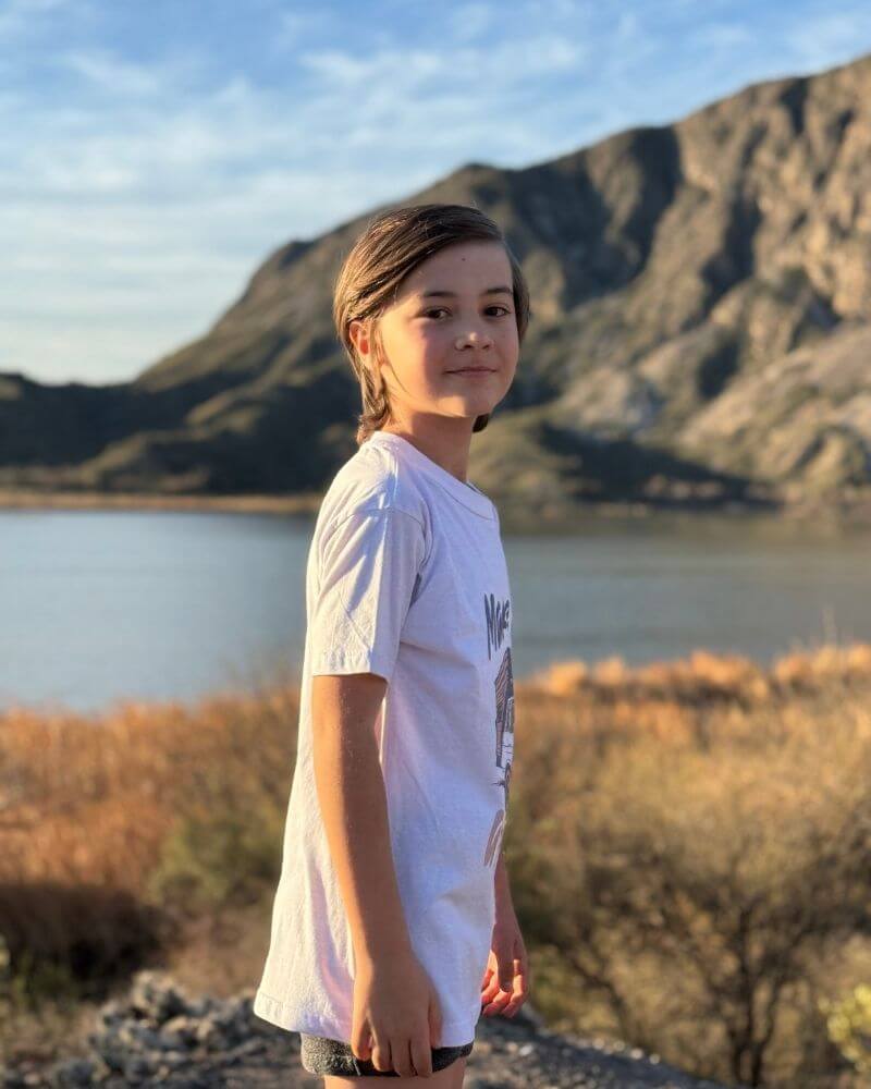 🧍♀️ África mide 1.04 y sus medidas de pecho son 51 cm y de cintura 51 cm. En la foto esta usando talla 10. ¡Pero aún le queda grande!