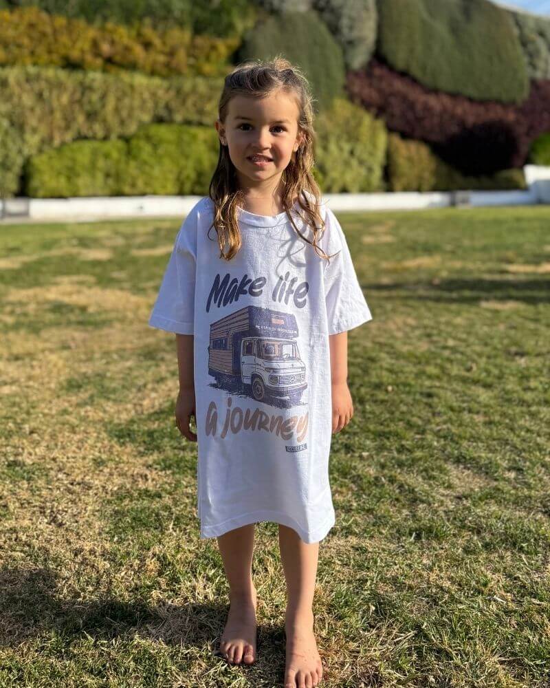 Este diseño lleva la ilustración del motorhome con el que viajamos por América. Pero no es solo un vehículo: es un hogar en movimiento, un símbolo de libertad y transformación.
